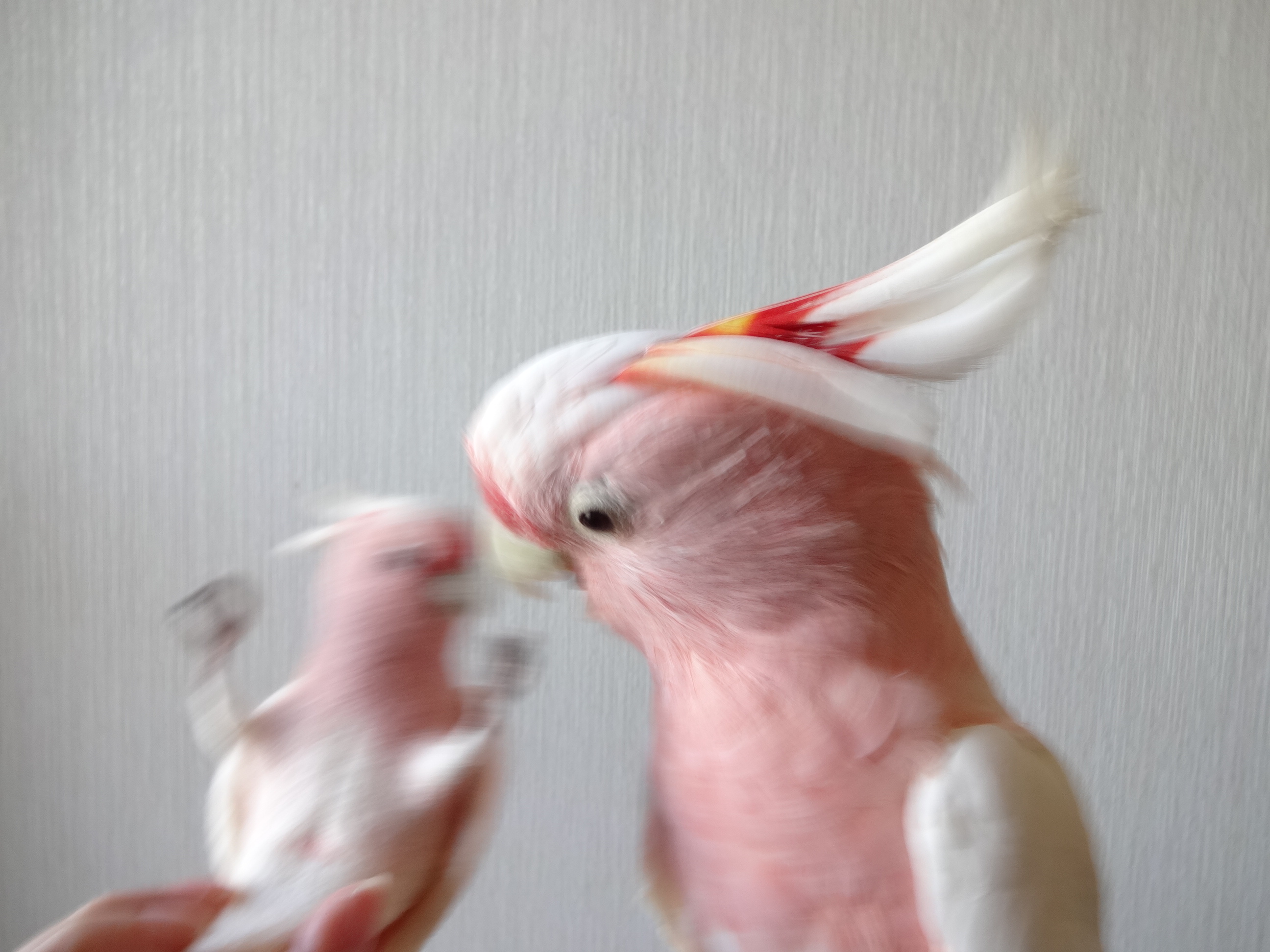 ちょうどこの写真を撮った時は強風が吹いていて、窓の外の洗濯物がビュンビュン揺れていたので、そちらに気を取られているうちにそぉーっと羊毛ぶちょーさんを近づけて奇跡の1枚を撮りました。