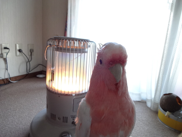 2011年の大震災をきっかけに、保温必須なぶちょーさんのために電気不要で使える灯油ストーブを購入し、放鳥時に毎日使っています(震災とは関係なく2回停電があったので実際かなり役に立ってます)。