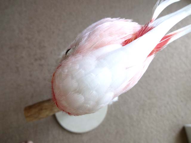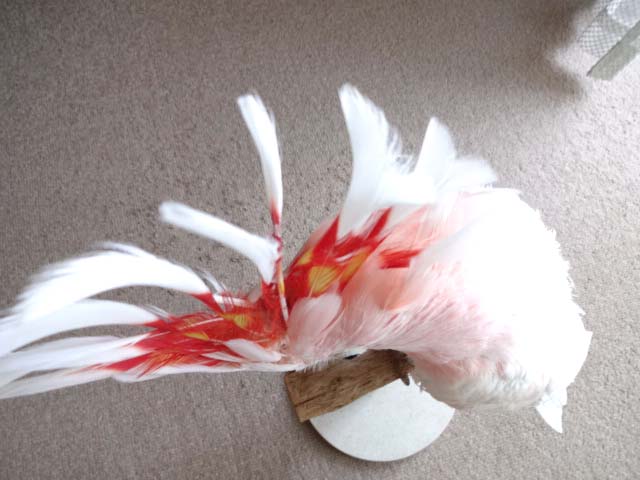 「これ、先生が作ったんですか?(←作れません)」「これ、先生が引っこ抜いたんですか?(←抜いてません)」「どうやって生えてくるんですか?(←にょきっと棒状に生えます)」と色々質問をいただいたので、ちょうどトヤ真っ最中のぶちょーさんの冠羽をお見せします。