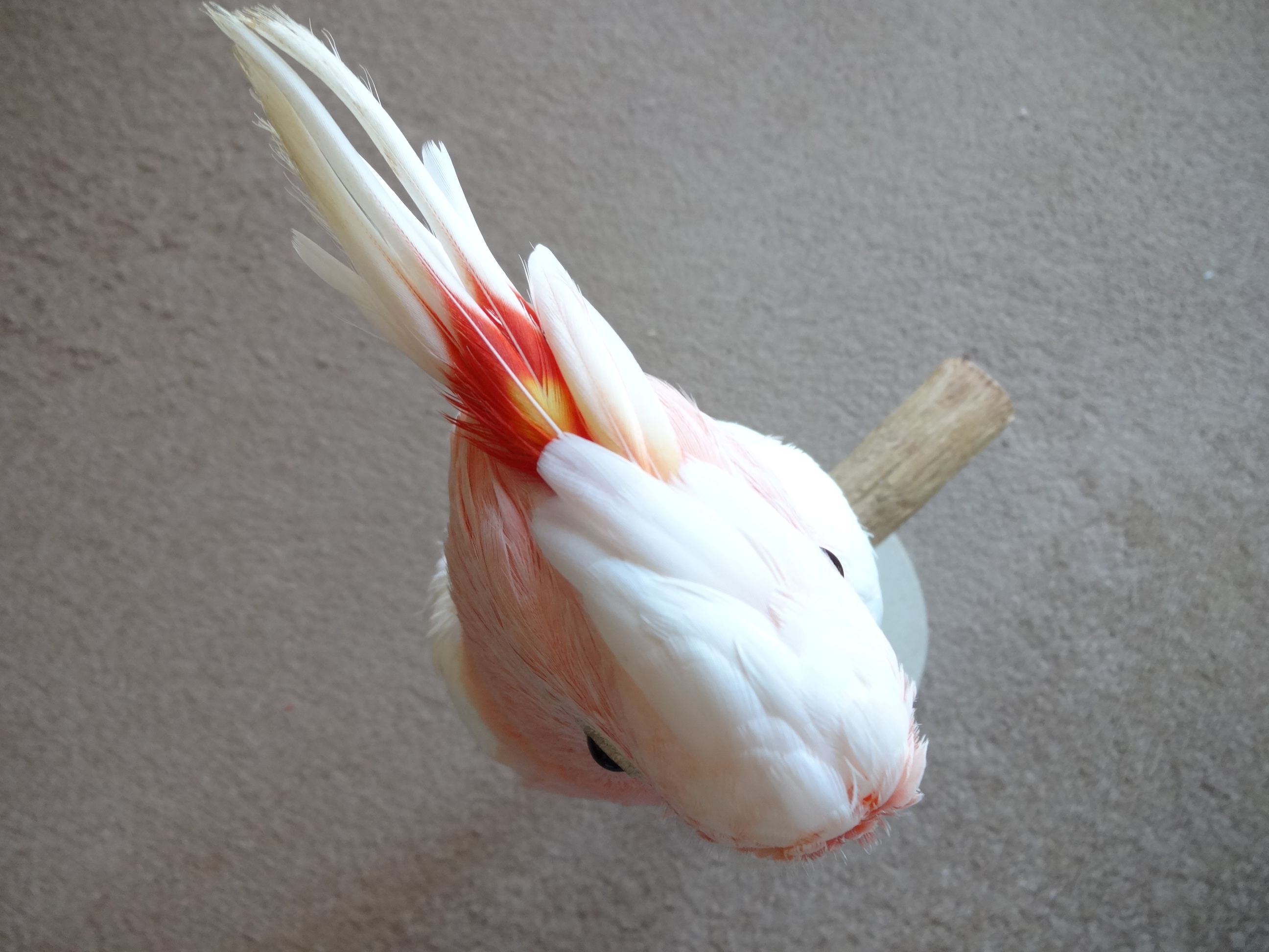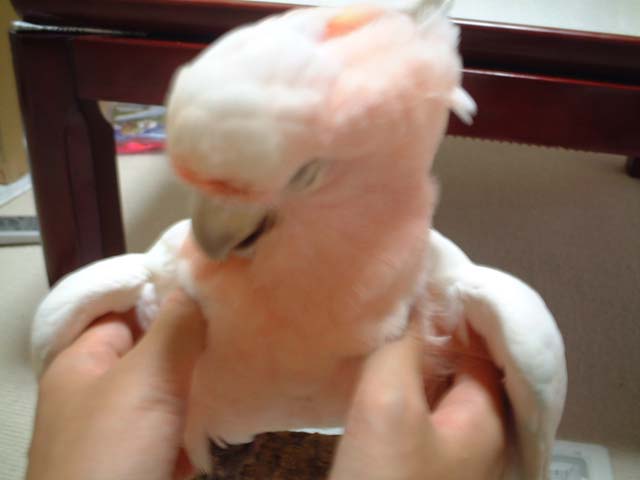 白色オウムはベタ慣れとよくいいますが、ぶちょーさんは一応白色オウムに入るものの、他の純粋な白色オウムとはちょっと違うな〜という感じです(脂粉も出ないし)。