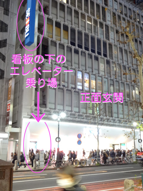 中央の正面玄関から入らずに、ここのエレベーターに乗ってください。