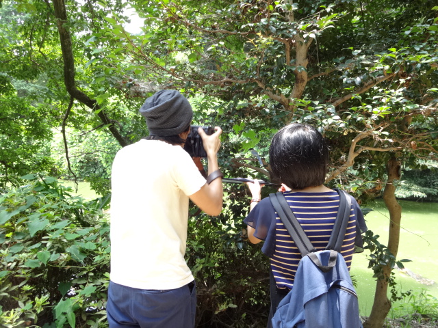 大の大人6人がなにやら小さな物を囲んでぶつぶつ言っている光景は端からみるととても怪しかったようで、色んな人が立ち止まっては覗き見て「あぁ、鳥を撮影してるんだ。ん…?にしてもなぜこの鳥は動かないんだ?」といった感じで不思議な顔をして去って行きました(笑)