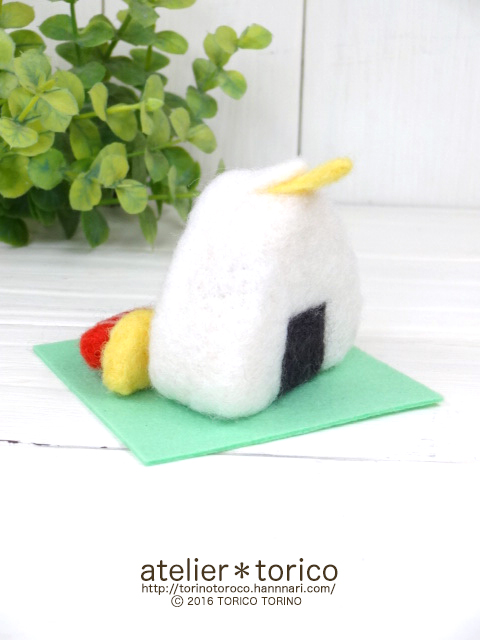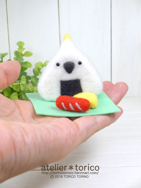 とりむすびはキバタンバージョンで、ごはんのやわらかい質感を出す為に他の作品よりもやわらかめの仕上がりにしてあります。