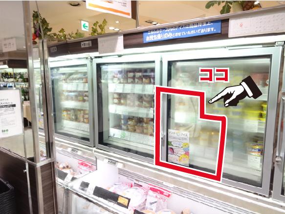 このエレベーターで地下1階に降りて右に進むとアイス売場があります。