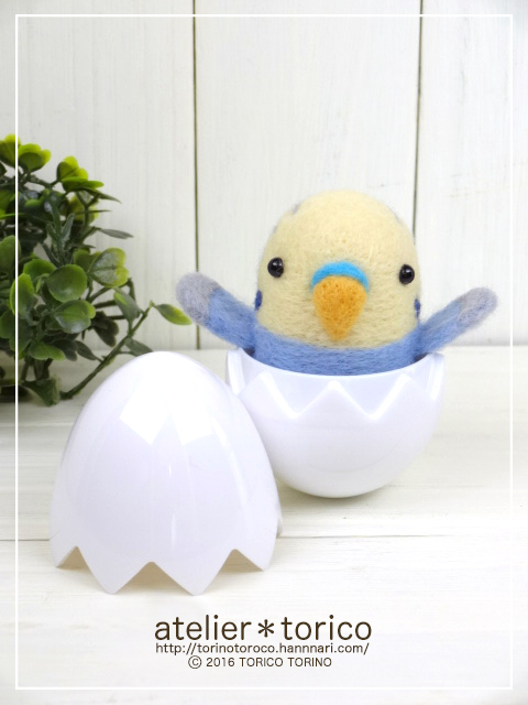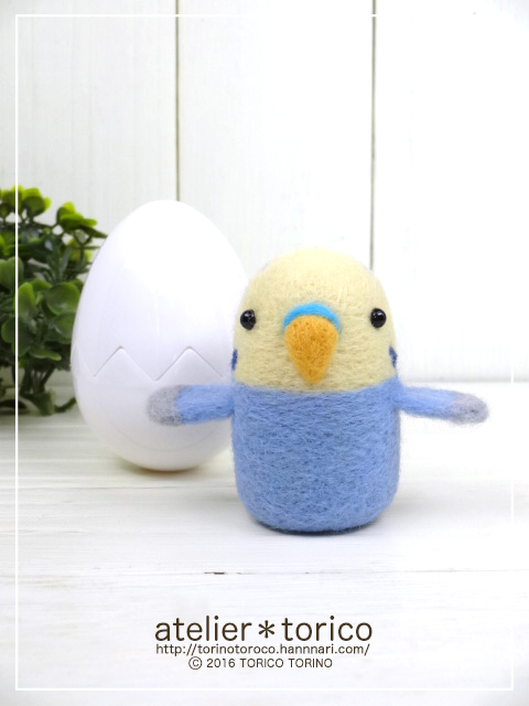 初日朝一で即売した卵の殻のインコ第2弾で、今回はパステルブルーにしてみました。