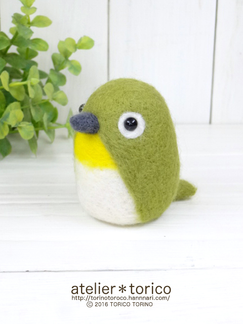 初心者対象ワークショップ用に作ったシンプルな形のメジロです。後ろに尾羽はついていますが翼はありません。お正月飾りにピッタリ♪
