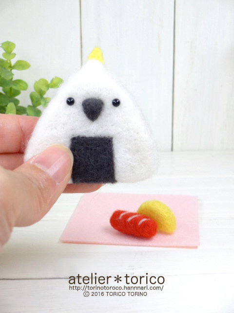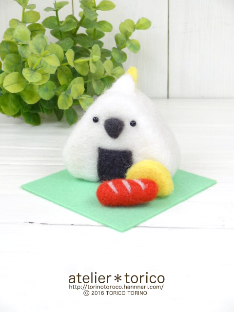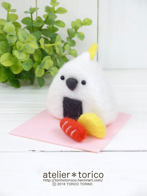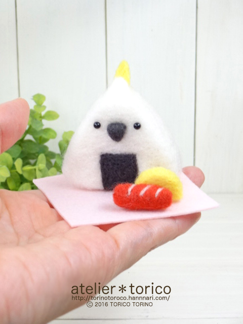 とりむすびはキバタンバージョンで、ごはんのやわらかい質感を出す為に他の作品よりもやわらかめの仕上がりにしてあります。