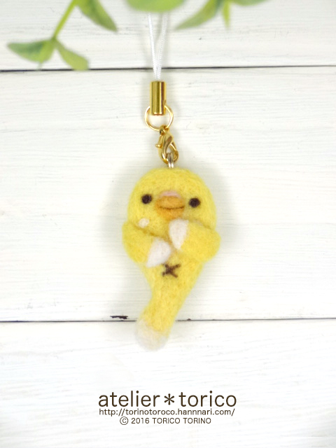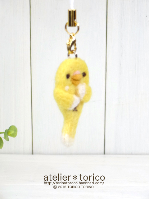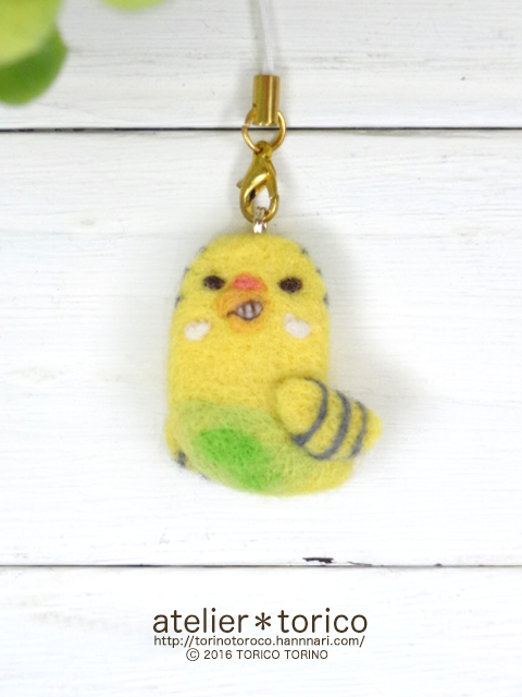 セキセイインコ(ルチノー)のストラップ。こちらもクスッと笑っている感じにしてみました。