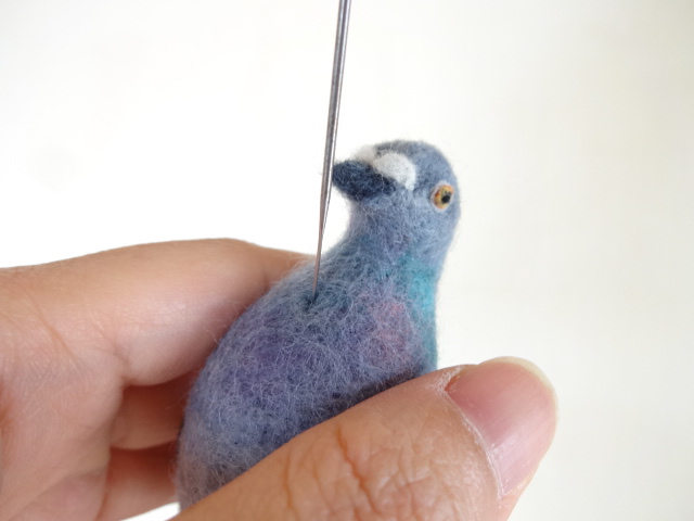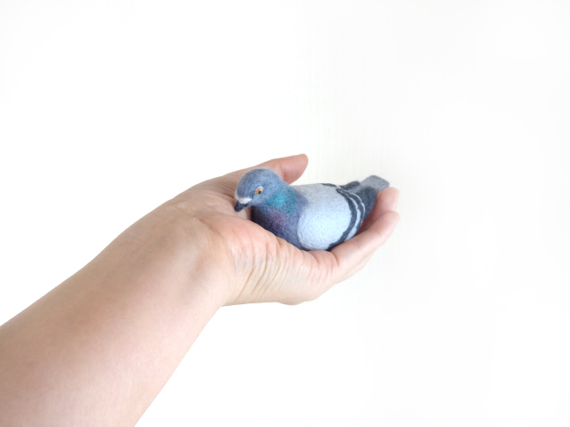 あわよくば、羊毛で完成させた鳩の現物をみんなに見せたら、生徒さん達の考えが変わって教室を決行することができるかも!?などと企みながら作ってましたが、実際に作ってみたらあまりにも難しすぎて結局のところ教室には不向きな鳥だという事を思い知りました。