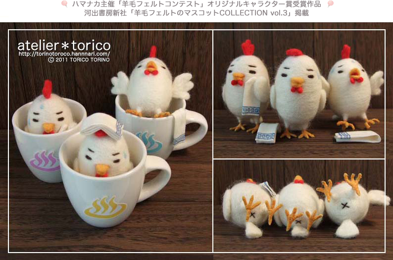 これプラス、かなり昔の作品ですが、ハマナカの羊毛フェルトコンテストで「オリジナルキャラクター賞」をいただいた時の作品も展示します(実物披露はたしか初めてだと思う)。