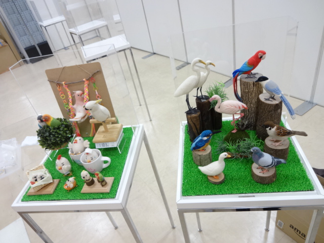 話は変わりまして、同フロアで開催のとりみカフェさんの小鳥催事「インコと小鳥の作品展」で作品展示に招待されました。