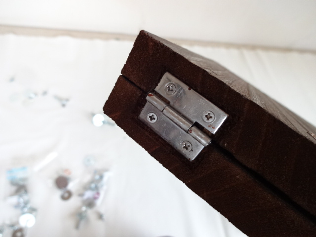 木口に色を塗り、蝶番を埋め込むとこんな感じになります。