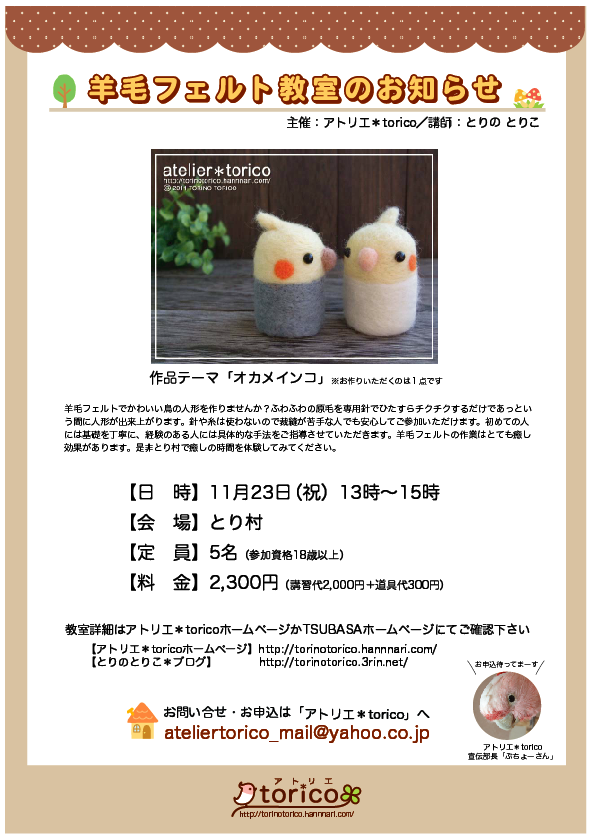 〜羊毛フェルトで作る鳥の世界〜 羊毛フェルト教室&愛鳥を綴る日記