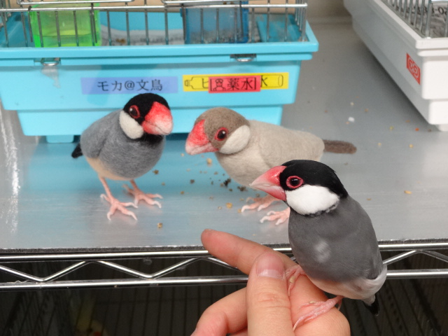 課題作品の文鳥は生徒さんが作りやすいようにあえて大きめのサイズにしましたが、原寸大で作ろうとするといまいち文鳥のサイズ感がわからない、ととり村で話したら、バックヤードにいる文鳥さんを特別に見せてもらう事が出来ました((*゚∀゚))
