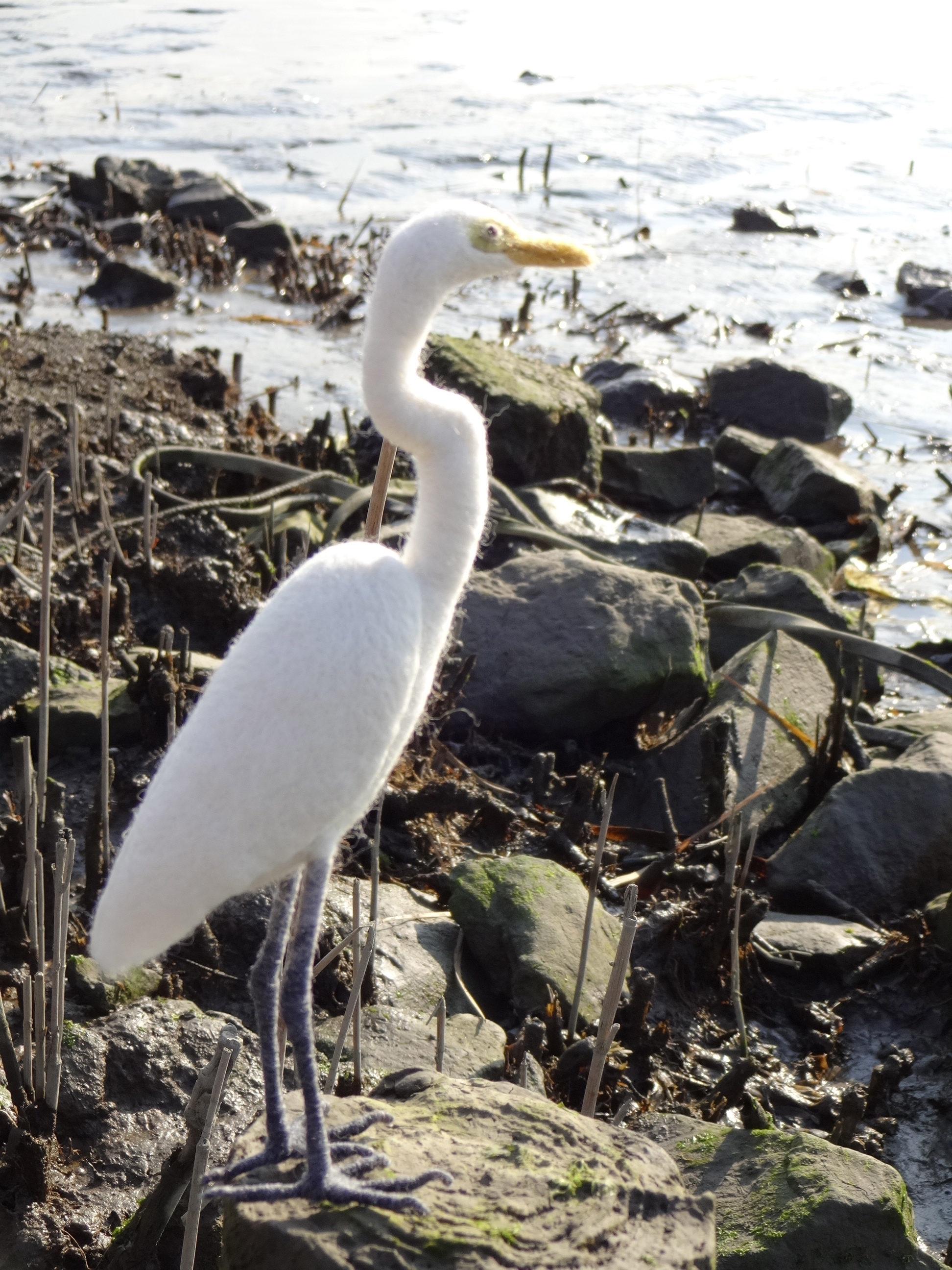 白鷺を立てれそうな場所をあちこち探し歩いてようやく見つけ、まずは1枚試し取り。