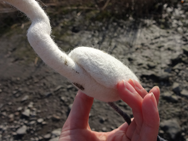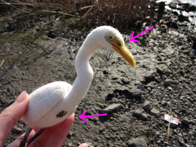 去年教室用に作った白鷺を、冬の川を背景に撮影したら素敵だろうな〜と何度も思いつつも、寒くてなかなか家から出る事ができずに結局は年を越してしまいました。