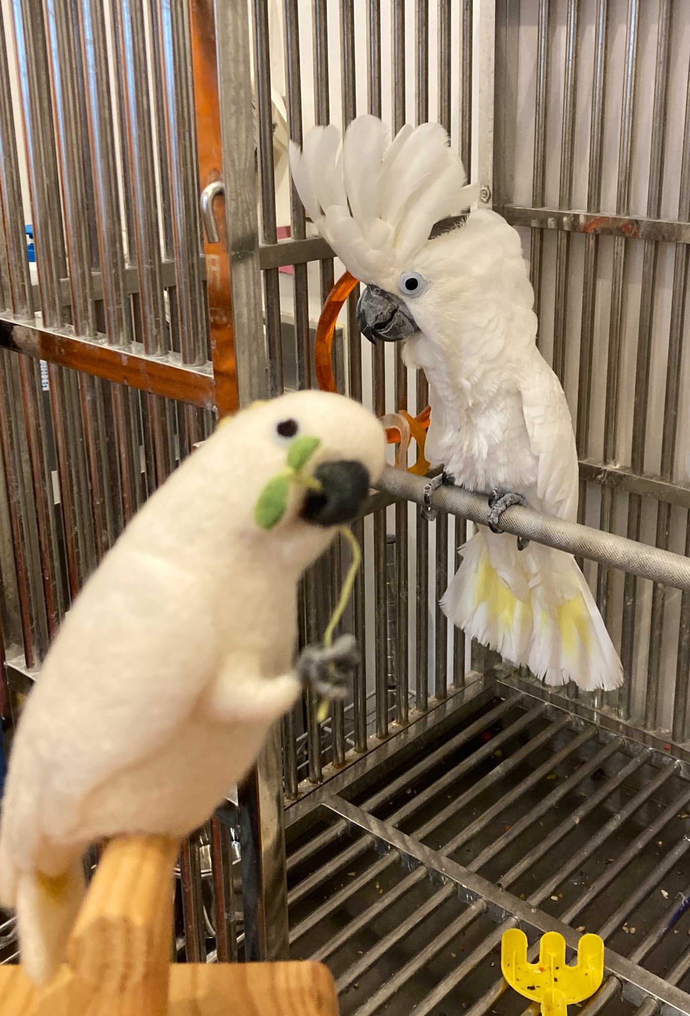 平日だと参加できないという声もいただいているので、平日と土日祝日クラスの2クラスで、5〜6月頃に2本足で自立する白色オウムのワークショップを計画しています。
