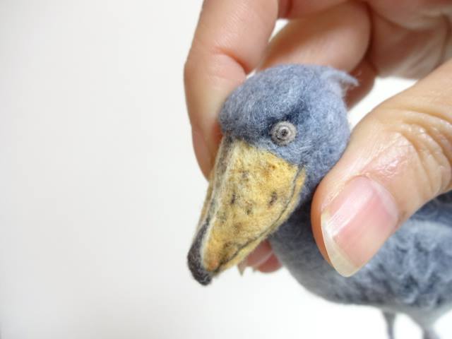 独特の形をしているのでうまくいかずに何度も作り直し、結局くちばしだけで5日かかりました。この模様のまだら具合も本っ当に大変だった〜(´д`;)