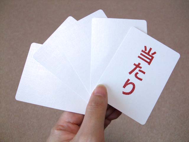 いたってシンプルな方法ですが、かちょーを使って実験した所、当たりをひくかどうかが私側に見えるので私も一緒になってドキドキして楽しめました。