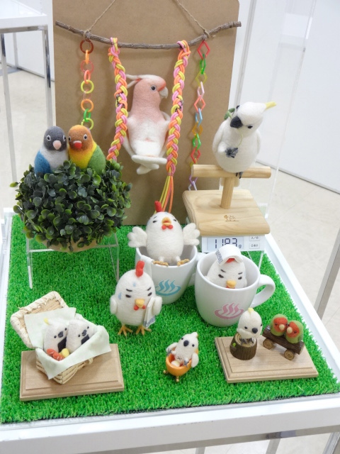 話は変わりまして、同フロアで開催のとりみカフェさんの小鳥催事「インコと小鳥の作品展」で作品展示に招待されました。