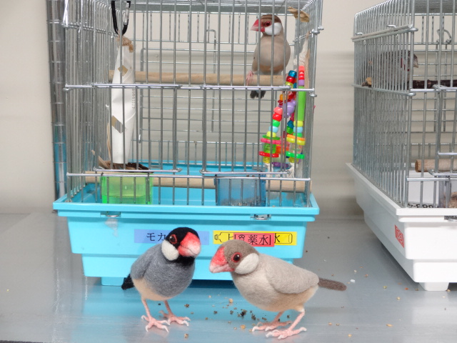 課題作品の文鳥は生徒さんが作りやすいようにあえて大きめのサイズにしましたが、原寸大で作ろうとするといまいち文鳥のサイズ感がわからない、ととり村で話したら、バックヤードにいる文鳥さんを特別に見せてもらう事が出来ました((*゚∀゚))