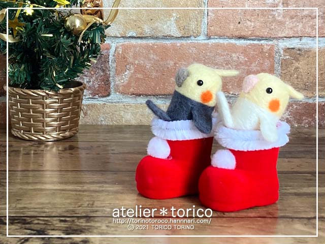 昨年ダイソーでかわいいクリスマスのブーツを見つけ、今年はそのブーツでワークショップをやろうと11/1にダイソーに駆け込んだら「今年は取り扱いがない」と言われてがっかりした話を生徒さんにしたら、その方が小さなミニブーツを見つけてきてくれました!