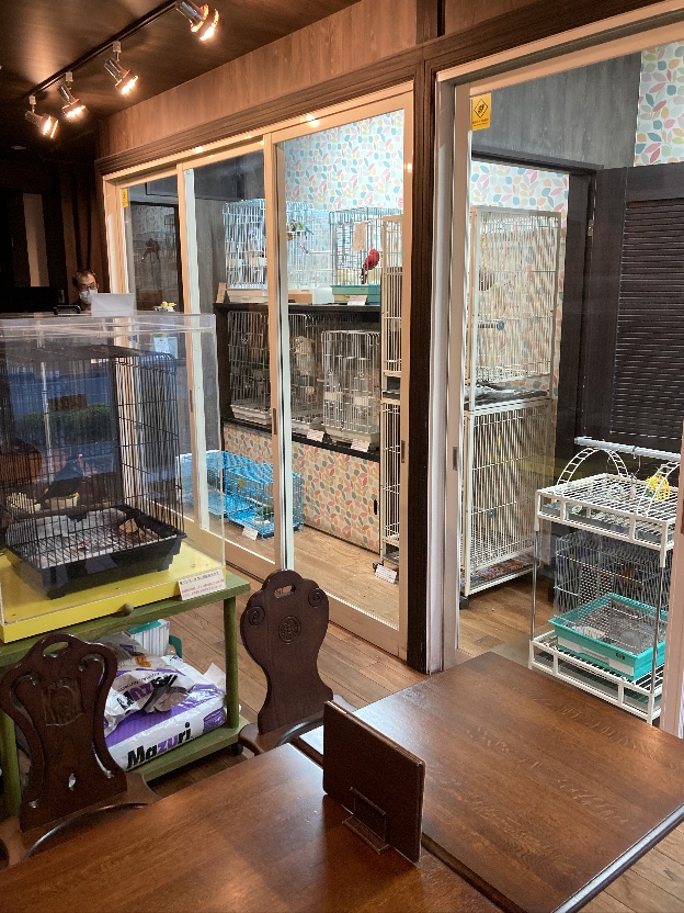 壁一面にいるオウムやインコを眺めながらチクチクできる最高のシチュエーションです♪